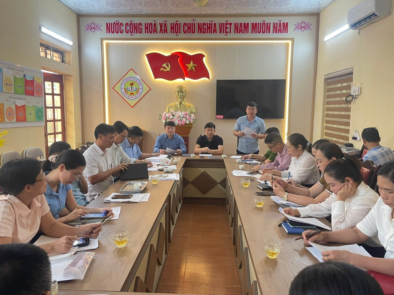 UỶ BAN NHÂN DÂN XÃ CÔNG CHÍNH KỂM TRA VIỆC TỔ CHỨC DẠY VÀ HỌC TẠI CÁC NHÀ TRƯỜNG TRÊN ĐỊA BÀN XÃ