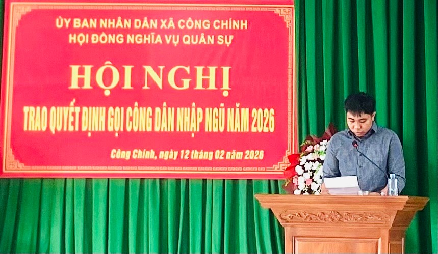 Ngày 12/02/2026, Ủy ban nhân dân xã Công Chính, Hội đồng Nghĩa vụ quân sự xã đã tổ chức Hội nghị trao Quyết định gọi công dân nhập ngũ năm 2026.